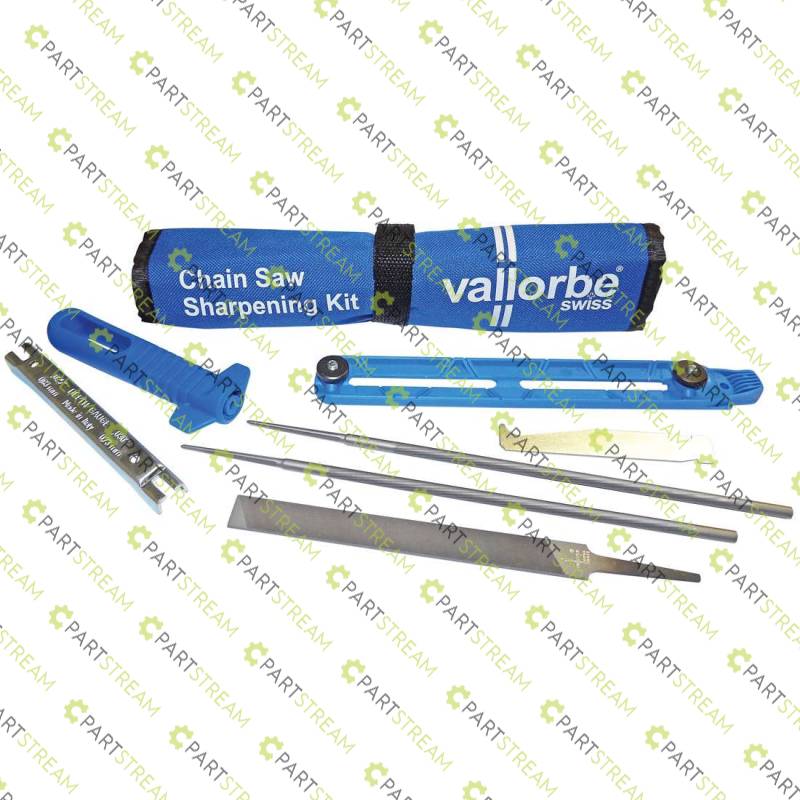 Vallorbe Sharpening Pro Kit Includes: 1 x Flat file, 2 x Round files, 1 x Handle, 1 x File guide, 1 x Depth gauge, 1 x Groove cleaner.