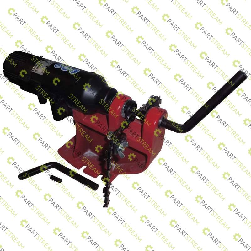 Tecomec Electric Chain Spinner used for spinning rivets on all chainsaw Chain 1/4", .325", 3/8LP", 3/8", .404". Make up chain loops with ease. Cast iron body. High torque gear motor.