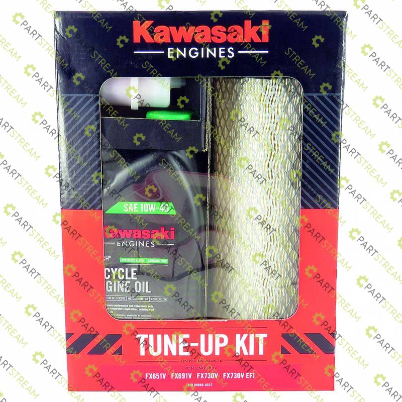 Fits Kawasaki models FX651V, FX691V, FX730V, FX730V EFI. Includes 1 x 11013-7044 Outer Filter, 1 x 11013-7045 Inner Filter, 1 x 49019-0031 Fuel Filter, 1 x 49065-0721 Oil Filter, 2 x 99969-6296 SAE 10W-40 K-Tech 1 quart bottles of oil (2 Quarts = 1.9 Litres), 2 x BPR4ES NGK spark plugs