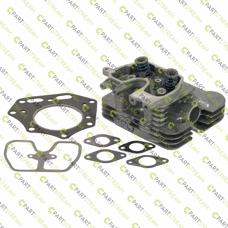 Fits Kawasaki models FX751V, FX801V, FX850V. Kit Contains: Cylinder head, head gasket, valve cover gasket, oil seal, intake valve, exhaust valve, spring seats, valve springs, valve retainer springs, collets, brackets, bolts, manifold gaskets, exhaust gaskets, and studs. Save labor by having all valves, valve guides, valve guide seals, valve springs and exhaust studs already installed.
